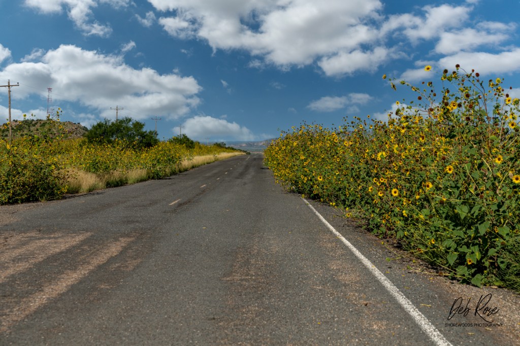 The first part of the road we travelled today was lined with beautiful yellow flowers. I understand it is called rabbitbrush. These are very different landscapes than Nevada LV.