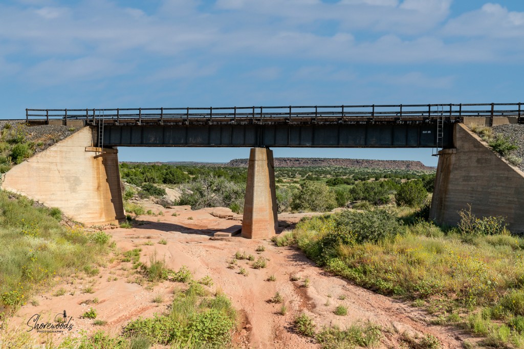 Landscape through a train trestle.