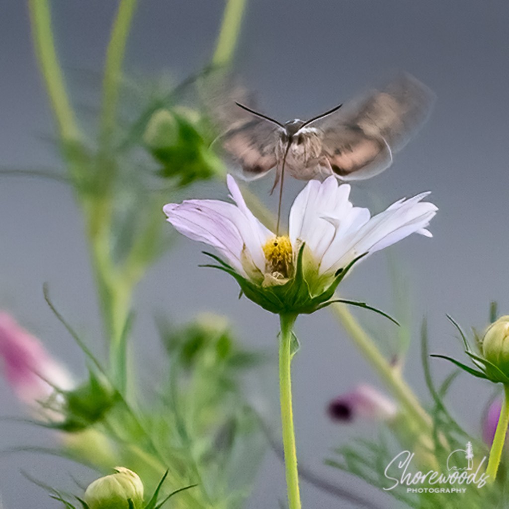 As Art and I relaxed in the garden as the sun began to set, Angela brought us watermelon and berries, which were WONDERFUL! As we were enjoying our food and the sunset, a hummingbird moth enjoyed some snacks too!