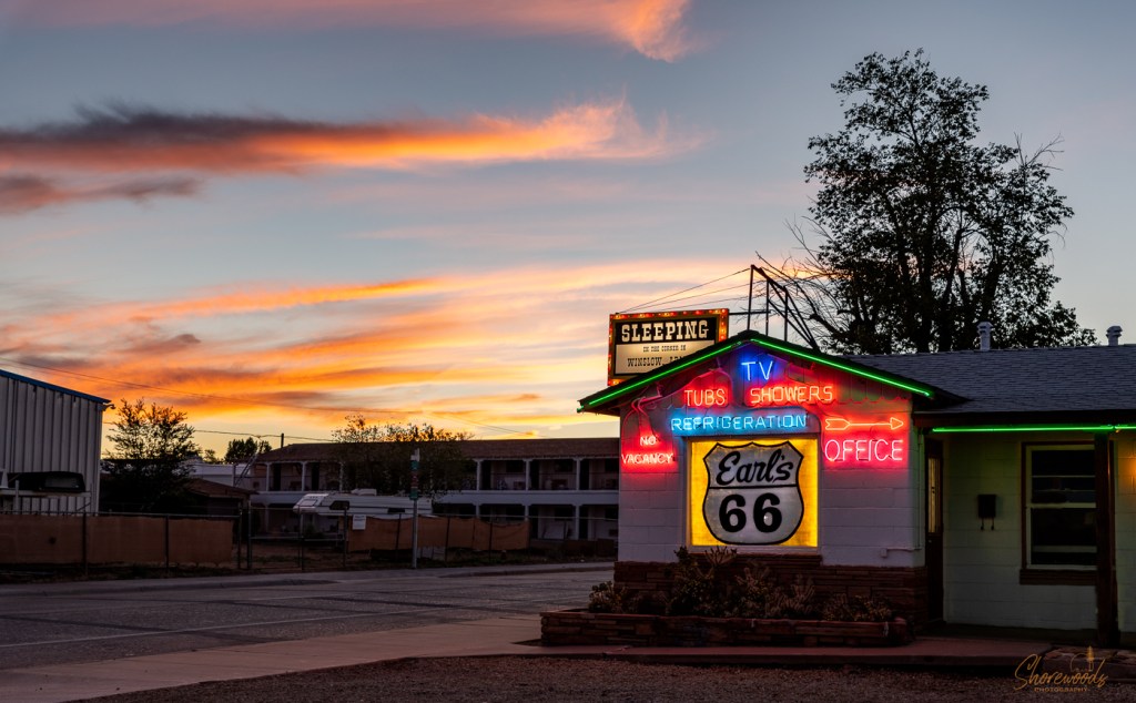 We are staying at a Route 66 classic motel: Earl’s Route 66 Motor Court. The history is rich: built in 1952, and called the Marble Motel, Floranel and Lee Earl bought the motor court in 1974. The current owners, Angela and Blas bought the motel in 2018 and are devoted to maintaining it as a Route 66 icon.
