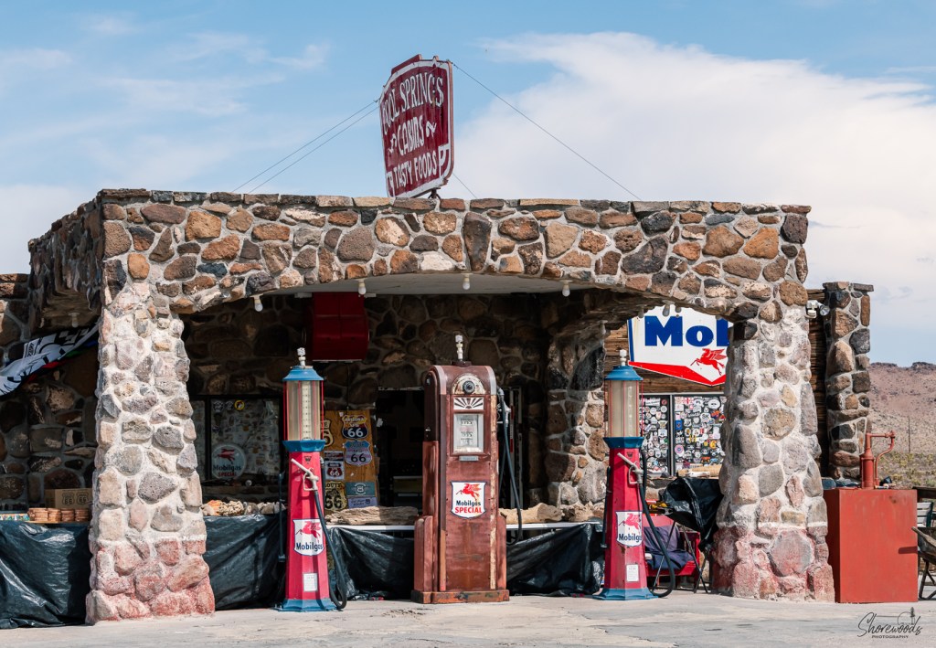 The agency was again very helpful, and made arrangements for us to visit the local rental agency office in Kingman. In fact, it was just past the corner we got stranded at last night! With a few hours before the office opened, we decided to go out for breakfast. We crossed our fingers and got in the rental car. The car started right up, and we drove a short distance down the road to Rutherford’s 66 Diner. Art planned for us to eat at the diner as it was on the way to the local rental car office, so if anything happened, we weren’t far away.