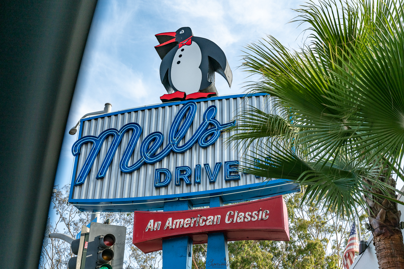 We found that many drive-ins along Route 66 had closed, but the towns kept the original marquis to use for community announcements, similar to this one in Azusa.
