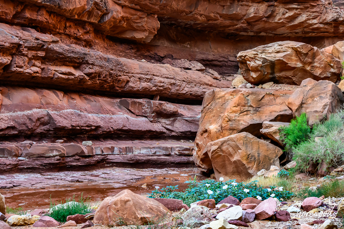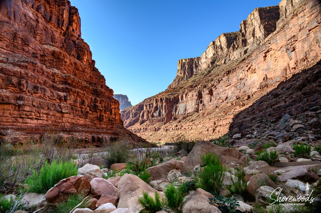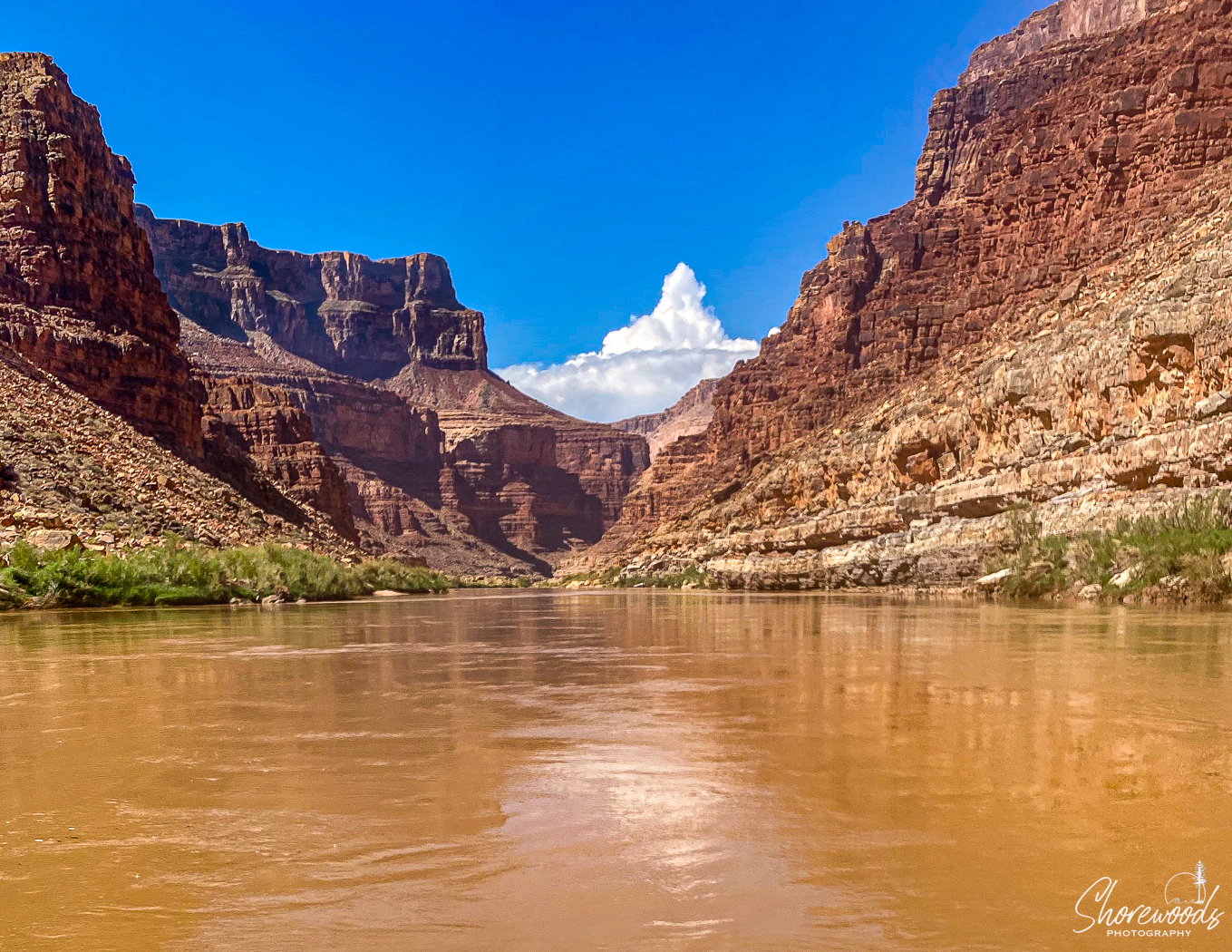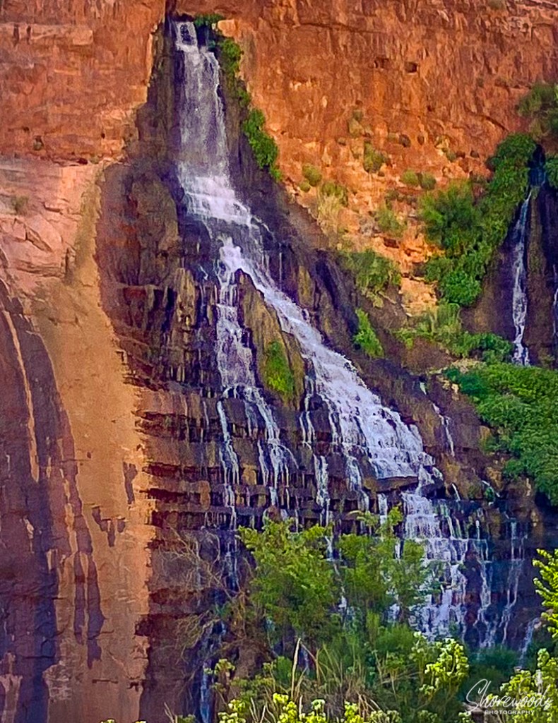 From the raft we took a photo of Vasey’s Paradise at mile 32. Vasey’s Paradise is an oasis in the Grand Canyon- who knew? The water from this large spring falls from the upper cliffs, creating a rich area for vegetation to grow. It is also one of only two known natural habitats of the Kanab Ambersnail, a federally listed critically endangered species of land snail.