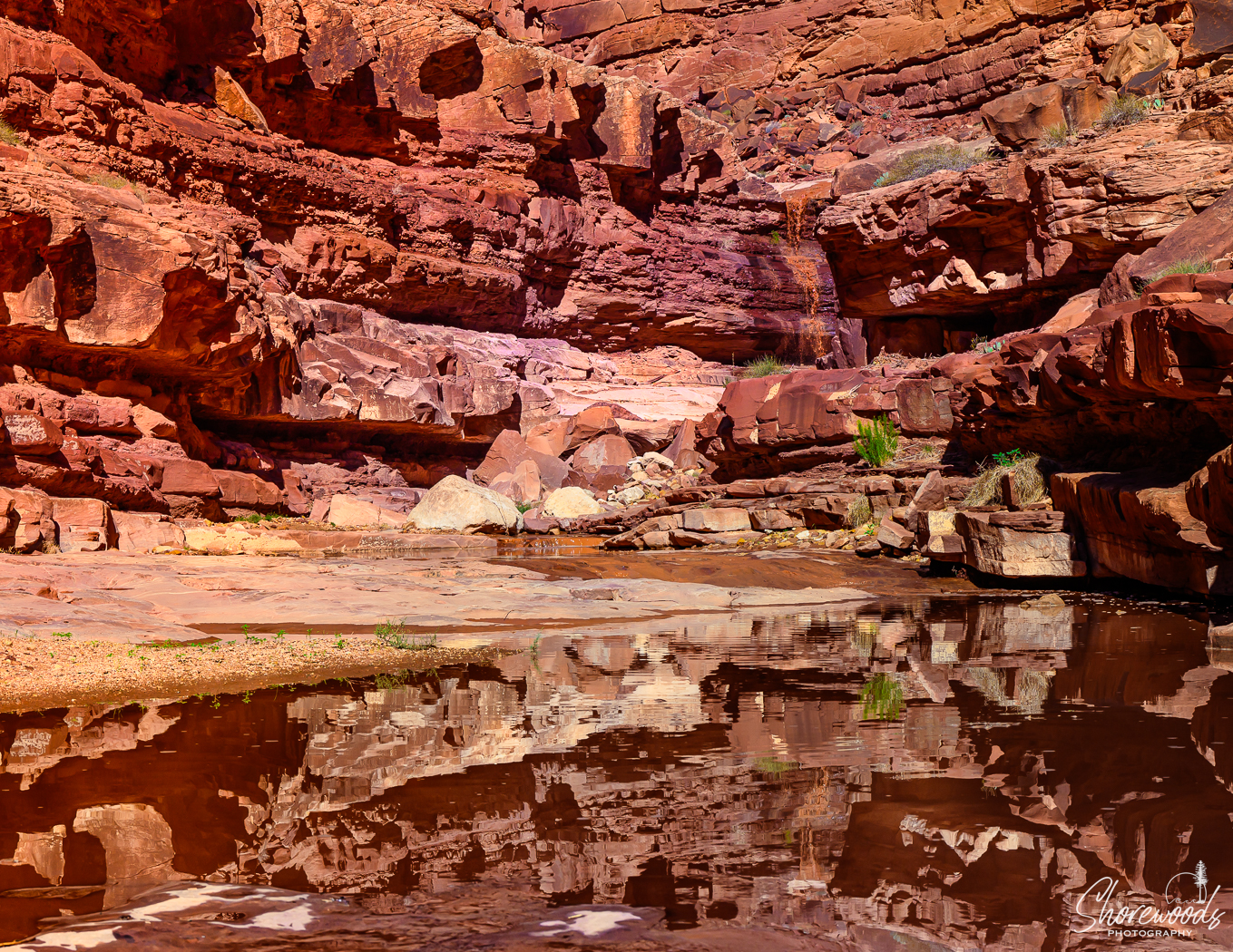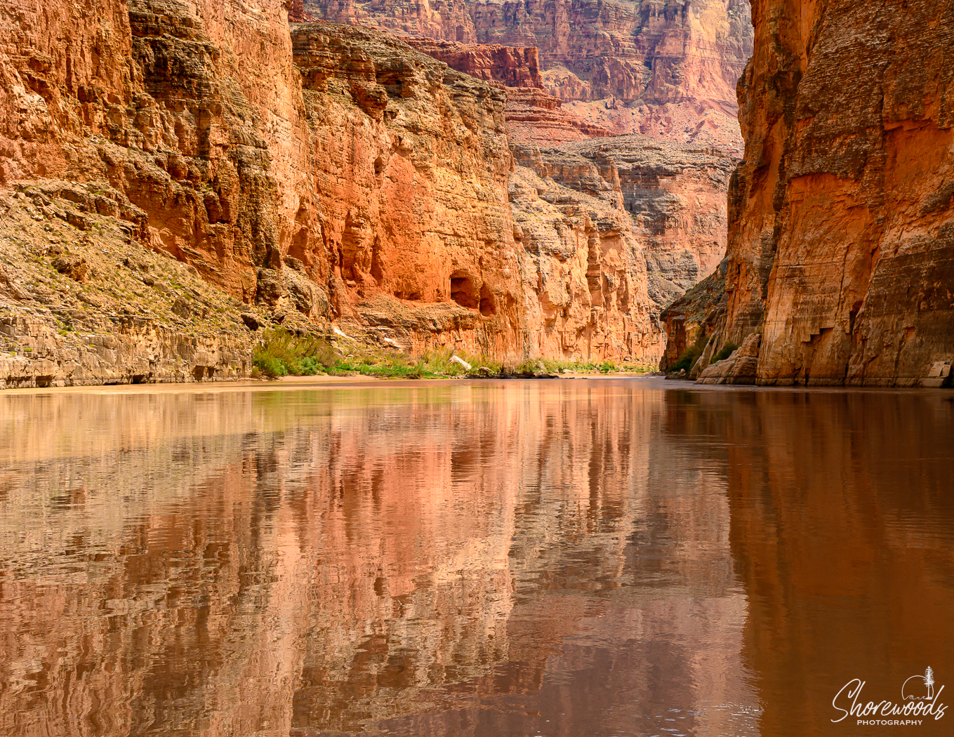 We are in constant awe of the diversity of the rock shape and color as the walls tower higher and higher above us as we go deeper into the canyon, and their reflections become quite spectacular.