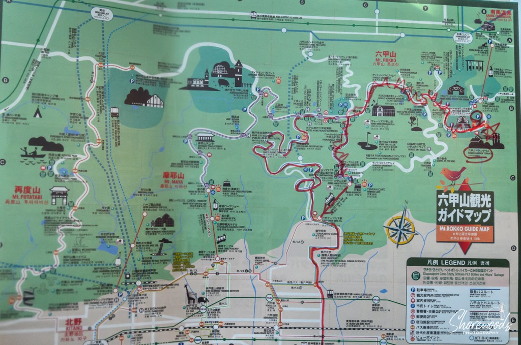 We had a taste of sake and plum wine which was intoxicating! Next we travel on to visit Mt. Rokkō. Mt. Rokkō is really a mountain range, with the highest point at 3056 feet. Our guide for the day shares a map showing our route to reach Rokkō Garden Terrace.