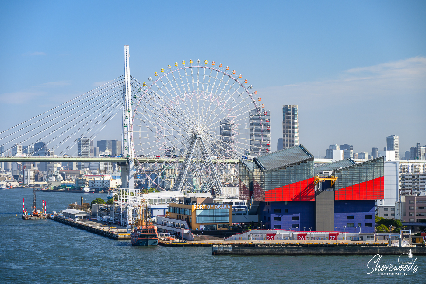 We woke to a beautiful morning of clear blue skies after an evening at sea. Late morning we sailed into Osaka Port, passing impressive container ships and marine docks.