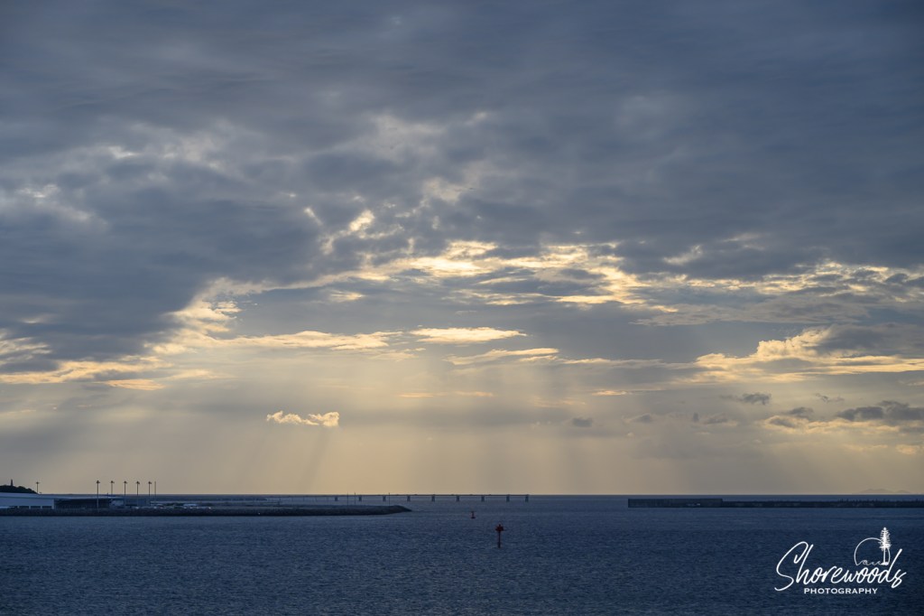 As we sail out of port, we catch some shots of port landscapes and boats as the sun quickly sets on the horizon.