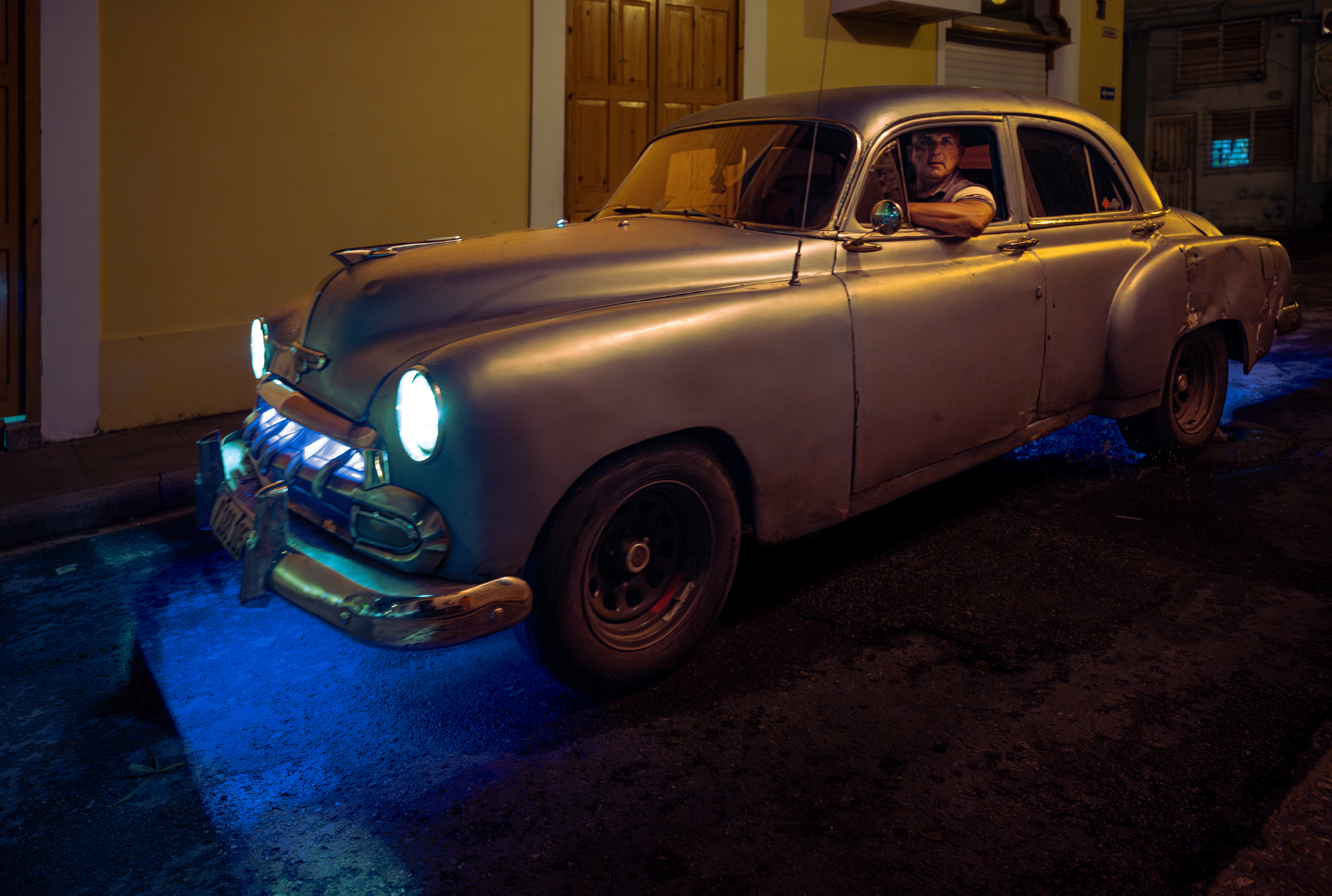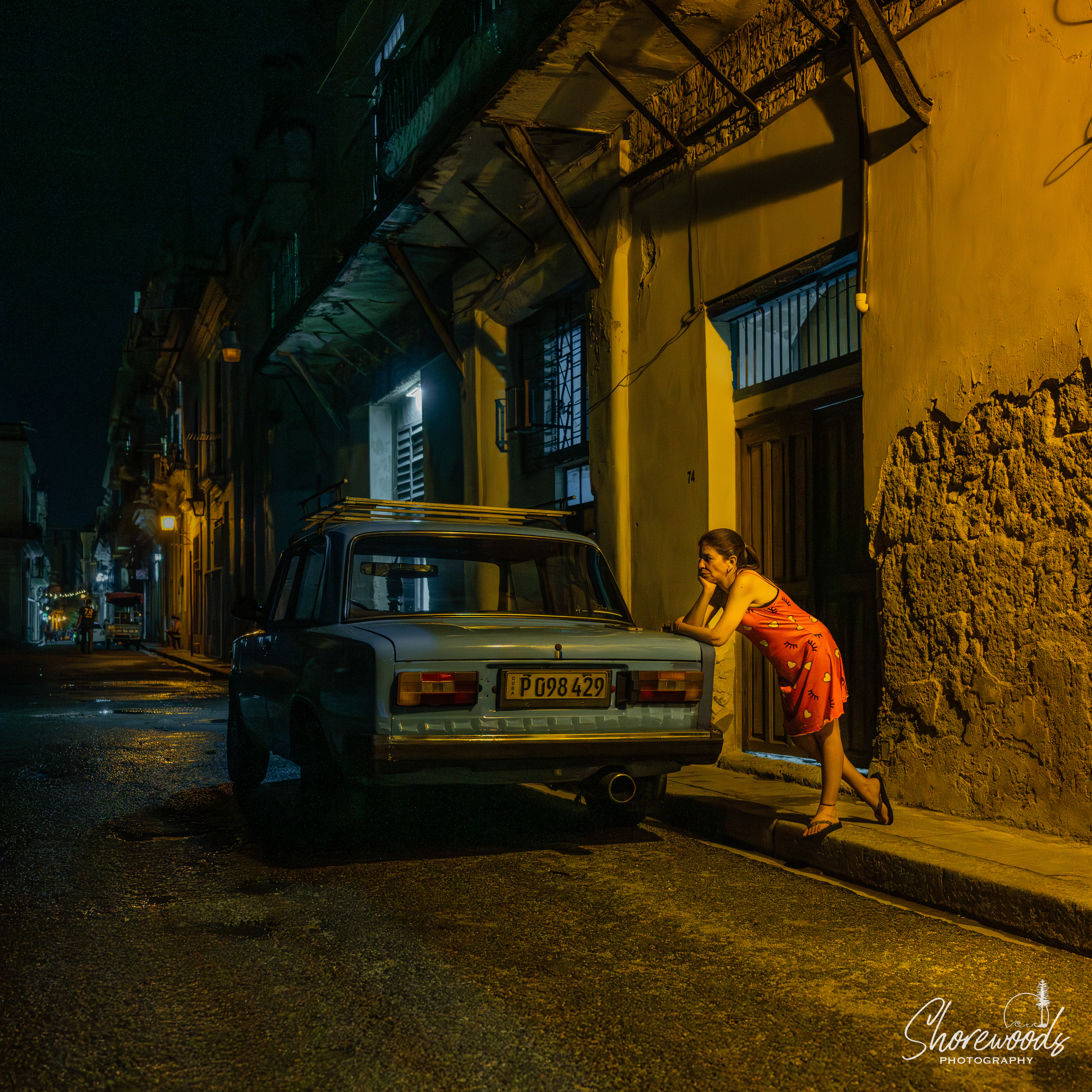 To be clear, it was a beer Mojito, where the Mojito is made with Cuban Rum, and then a can of beer is inverted into the glass. As you drink the Mojito, the beer refills the glass, and mixes with the rum. The rain soon stopped, and we headed to dinner on the rooftop of a local restaurant. The food was delicious, and we felt refreshed and energized to head out for an evening of street photography, and our first opportunities to make photos in the streets of Havana.